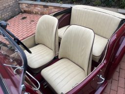 -The subject of a chassis-up restoration around 25 years ago during which time it changed colour from blue to red. The interior was fully retrimmed in 1997 restuffed with new horsehair. The engine was rebuilt by C.K. Motor Engineers in 2005.